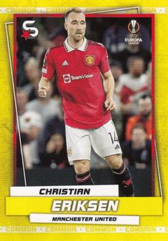 Christian Eriksen's Soccer cards are available in at least 59 sets. Christian Eriksen's biggest 7-day price movers are 2022 Topps UEFA Superstars #168b Common Yellow, 2022 Topps UEFA Superstars #168 Base, and 2022 Topps UEFA Superstars #168 Legendary Red Wave Chrome Refractor /5.