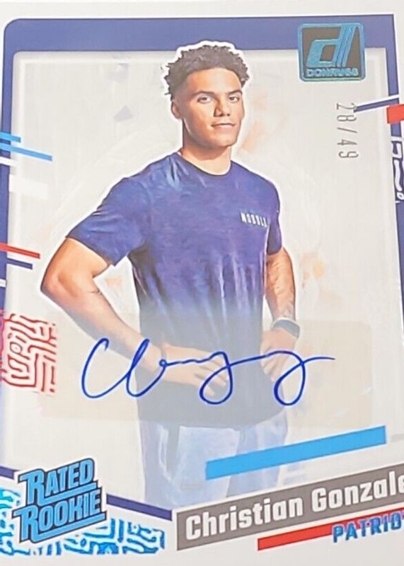 2023 Panini Donruss Christian Gonzalez Rated Rookie Portrait Auto /49 Patriots