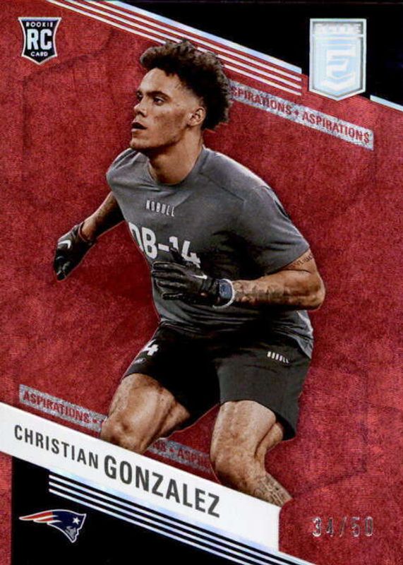 The Christian Gonzalez 2023 Elite #120 Aspirations (/50) Rookie card in Raw condition has not changed in price in the last 30 days and was last sold for $8.99 .