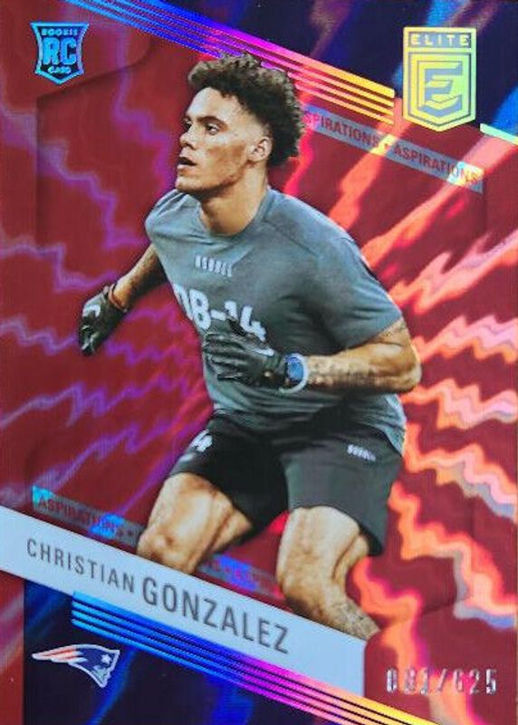 2023 Donruss Elite Aspirations Shimmer Christian Gonzalez Rookie 106/625 NE Pats