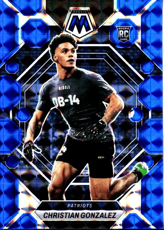 The Christian Gonzalez 2023 Mosaic #300 Blue /99 Rookie card in Raw condition has not changed in price in the last 30 days and was last sold for $35.99 .