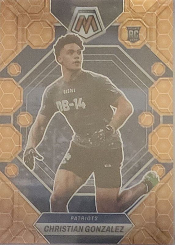 The Christian Gonzalez 2023 Mosaic #300 Honeycomb /(SSP) Rookie card in Raw condition has not changed in price in the last 30 days and was last sold for $44.00 .
