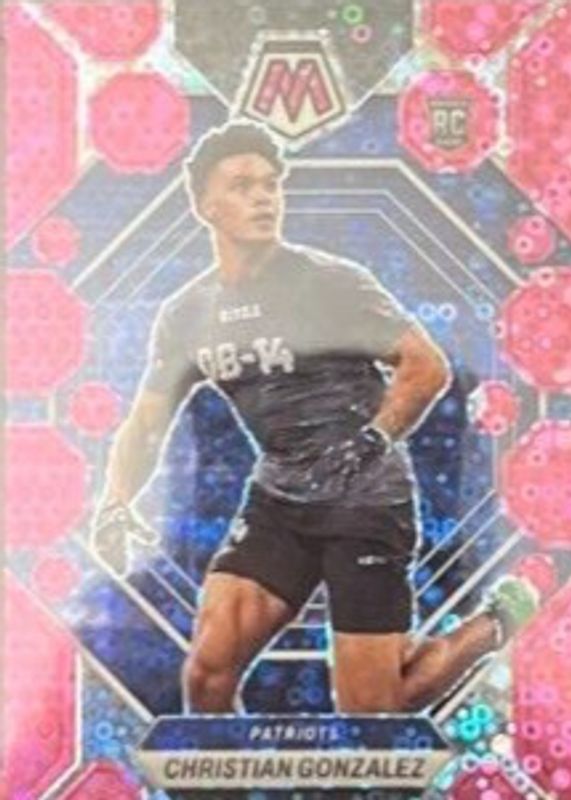 This card is 1 of 54 Christian Gonzalez's card variations in the 2023 Mosaic set being tracked by Sports Card Investor, including Base, Choice Red & Green, Green, Mosaic, and No Huddle.