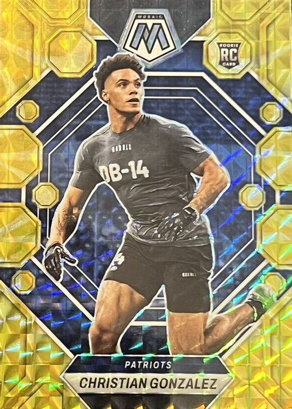 Christian Gonzalez 2023 Panini Mosaic #300 Patriots RC Reactive Yellow Mosaic