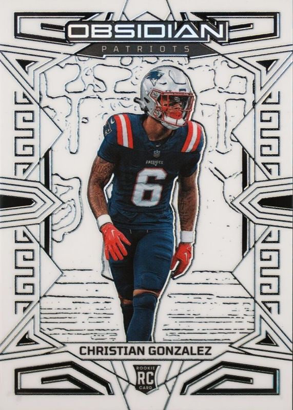 This card is 1 of 14 Christian Gonzalez's card variations in the 2023 Obsidian set being tracked by Sports Card Investor, including Base, Asia, Electric Etch Red Flood /90, Electric Etch Purple /75, and Electric Etch Orange /49.