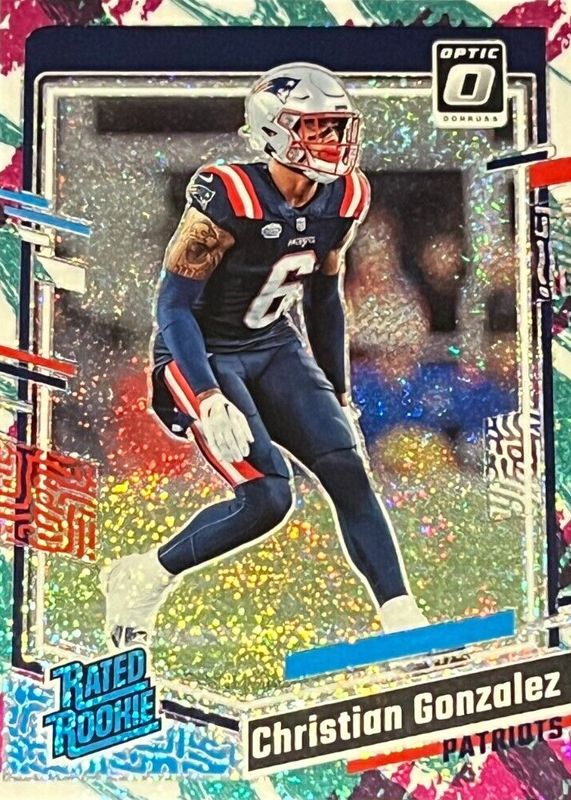 This card is 1 of 53 Christian Gonzalez's card variations in the 2023 Optic set being tracked by Sports Card Investor, including Base, Blue Hyper, Blue Scope, Green Hyper, and Green Velocity.