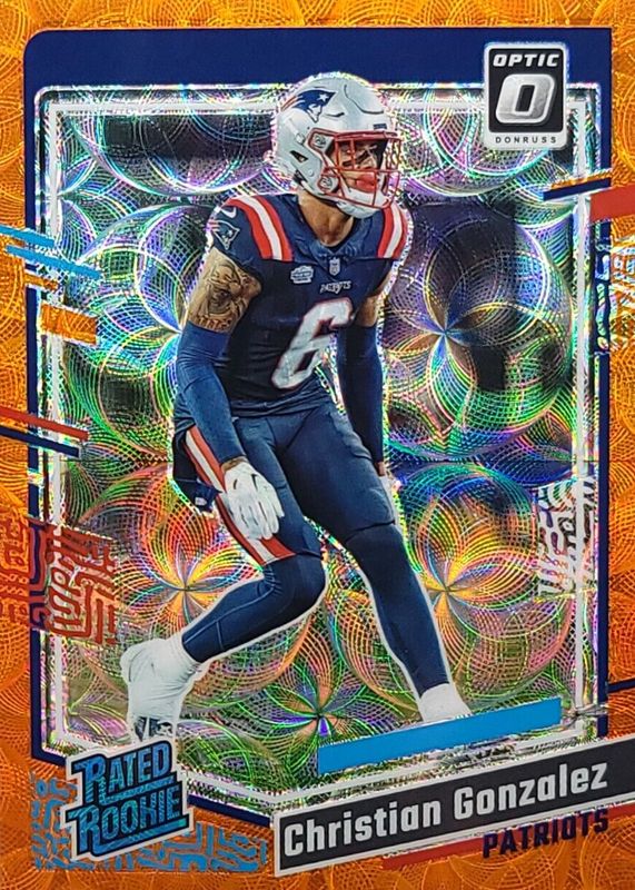 2023 Donruss Optic CHRISTIAN GONZALEZ RC ORANGE SCOPE #'d /79 Pats ROOKIE #274