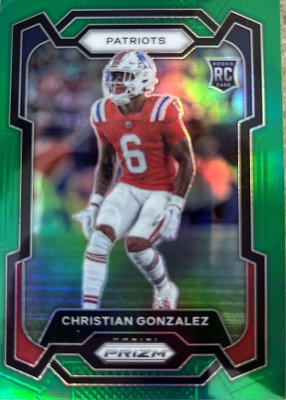 The Christian Gonzalez 2023 Prizm #369 Green Rookie card in Raw condition has moved down -$8.00 (-80.0%) in the last 30 days and was last sold for $2.00 .
