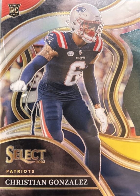 This card is 1 of 66 Christian Gonzalez's card variations in the 2023 Select set being tracked by Sports Card Investor, including Club Level, Suite Level, Club Level Black & Gold Die-Cut, Club Level Black & Green Die-Cut, and Club Level Disco.