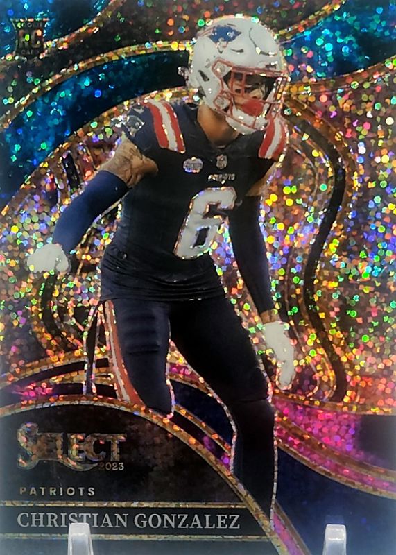 This card is 1 of 66 Christian Gonzalez's card variations in the 2023 Select set being tracked by Sports Card Investor, including Club Level, Suite Level, Club Level Black & Gold Die-Cut, Club Level Black & Green Die-Cut, and Club Level Black & Red Die-Cut.