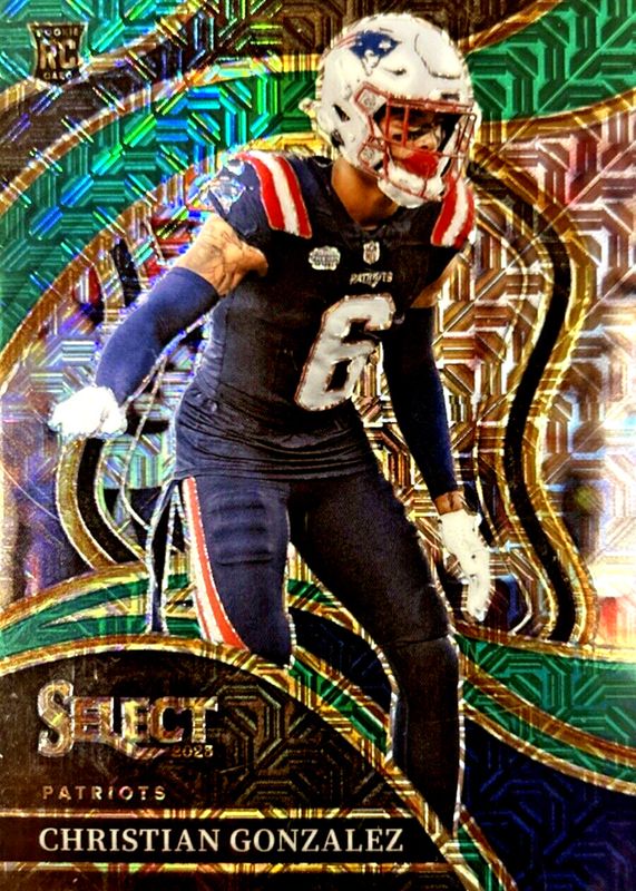 This card is 1 of 66 Christian Gonzalez's card variations in the 2023 Select set being tracked by Sports Card Investor, including Club Level, Suite Level, Club Level Black & Gold Die-Cut, Club Level Black & Green Die-Cut, and Club Level Black & Red Die-Cut.