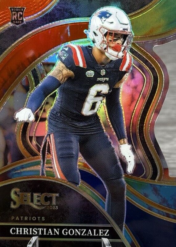 This card is 1 of 66 Christian Gonzalez's card variations in the 2023 Select set being tracked by Sports Card Investor, including Club Level, Suite Level, Club Level Black & Gold Die-Cut, Club Level Black & Green Die-Cut, and Club Level Black & Red Die-Cut.