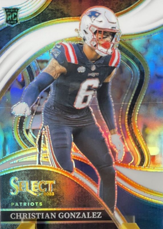 This card is 1 of 66 Christian Gonzalez's card variations in the 2023 Select set being tracked by Sports Card Investor, including Club Level, Suite Level, Club Level Black & Gold Die-Cut, Club Level Black & Green Die-Cut, and Club Level Black & Red Die-Cut.