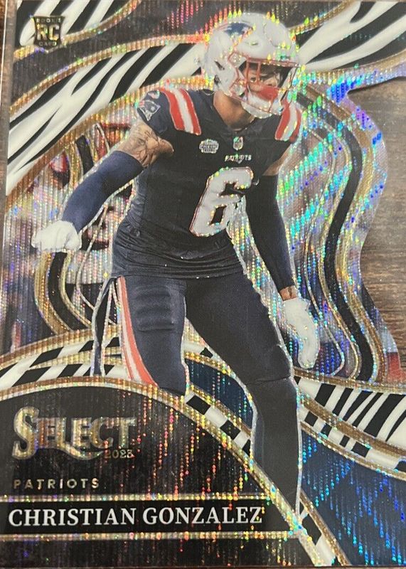 2023 Select Christian Gonzalez #286 Zebra Prizms Die Cuts New England Patriots
