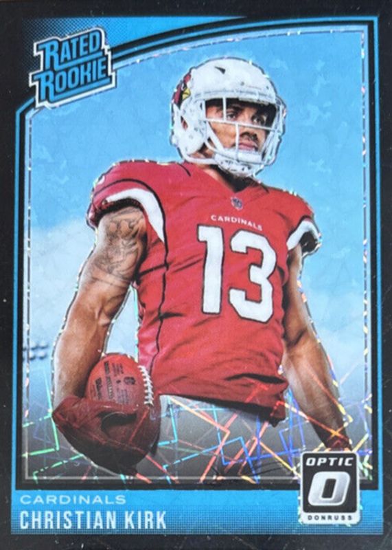 This card is 1 of 42 Christian Kirk's card variations in the 2018 Optic set being tracked by Sports Card Investor, including Base, Bronze, Green Velocity, Holo, and Pink.