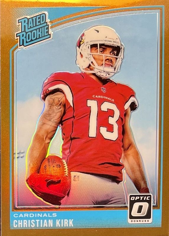 This card is 1 of 42 Christian Kirk's card variations in the 2018 Optic set being tracked by Sports Card Investor, including Base, Green Velocity, Holo, Pink, and Red & Yellow.
