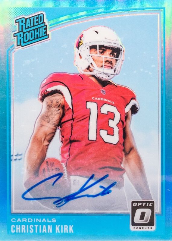 CHRISTIAN KIRK- 2018 Donruss Optic 163 Blue Prizm- Rated RC Rookie -AUTO /75