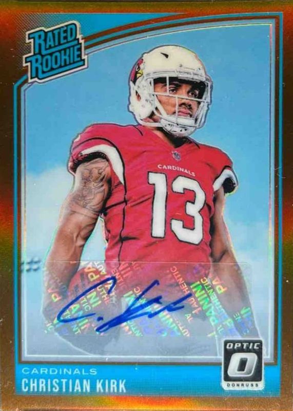The Christian Kirk 2018 Optic #163 Rated Rookie Autographs - Bronze card in Raw condition has not changed in price in the last 30 days and was last sold for $45.00 .