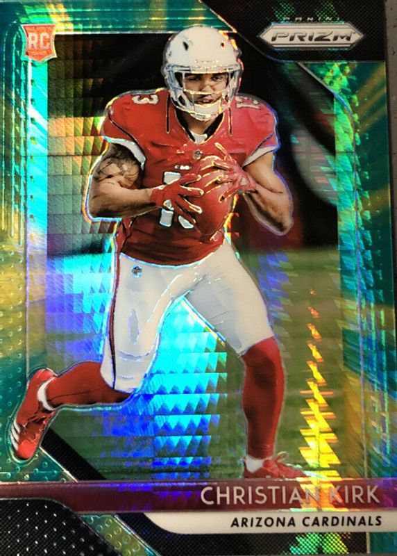 This card is 1 of 55 Christian Kirk's card variations in the 2018 Prizm set being tracked by Sports Card Investor, including Base, Disco, Green, Lazer, and Neon Green Pulsar.