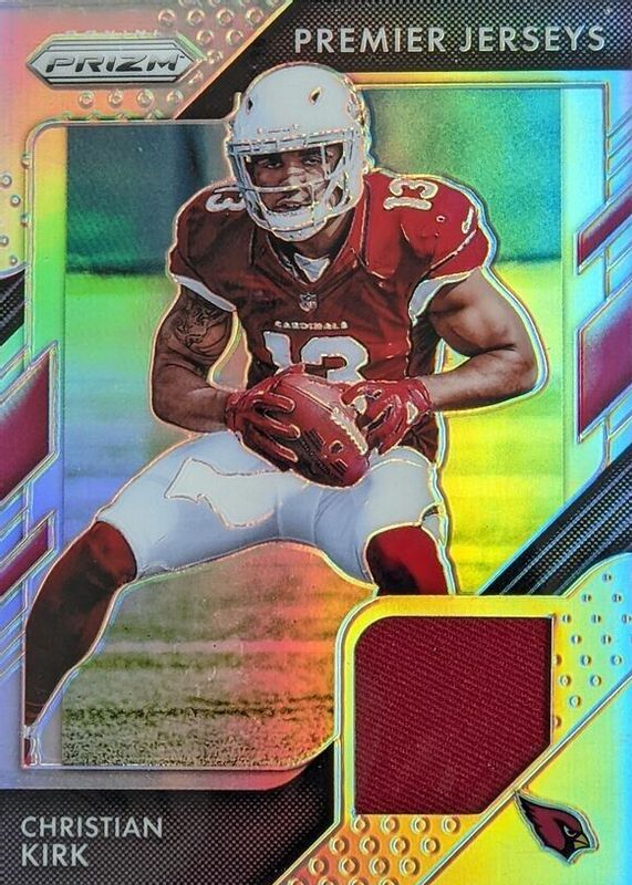 The Christian Kirk 2018 Prizm #PP-19 Premier Jerseys Rookie card in Raw condition has not changed in price in the last 30 days and was last sold for $1.45 .
