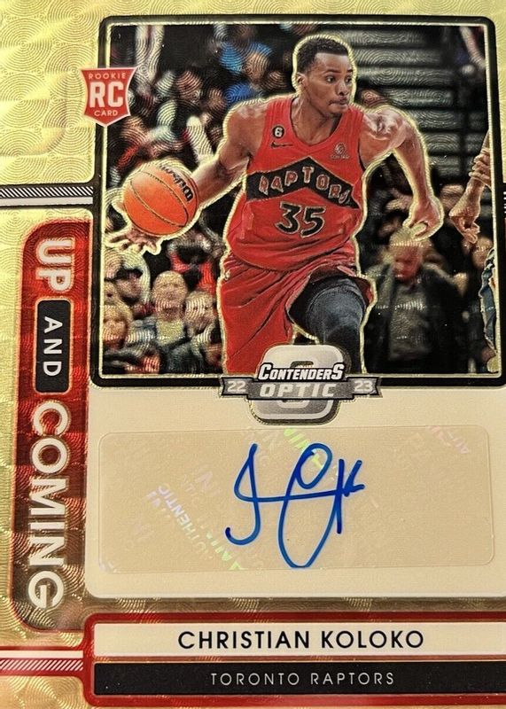 The Christian Koloko 2022 Contenders Optic #116 Rookie Ticket Auto - Gold Vinyl /1 card in Raw condition has not changed in price in the last 30 days and was last sold for $220.00 .