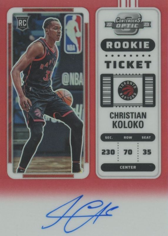 2022-23 Contenders Optic Christian Koloko Red Prizm Auto /99 RC Raptors #116