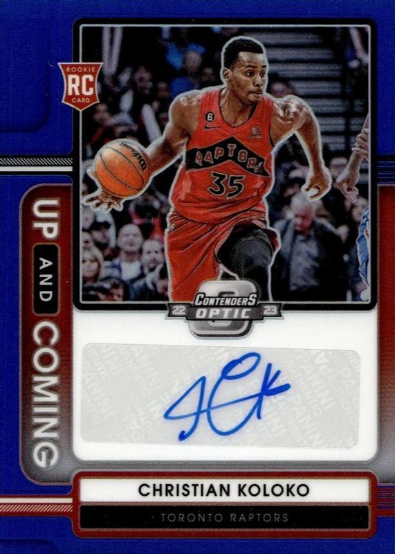 The Christian Koloko 2022 Contenders Optic #UCA-CKK Up and Coming Autographs - Blue (/75) Rookie card in Raw condition has not changed in price in the last 30 days and was last sold for $3.00 .