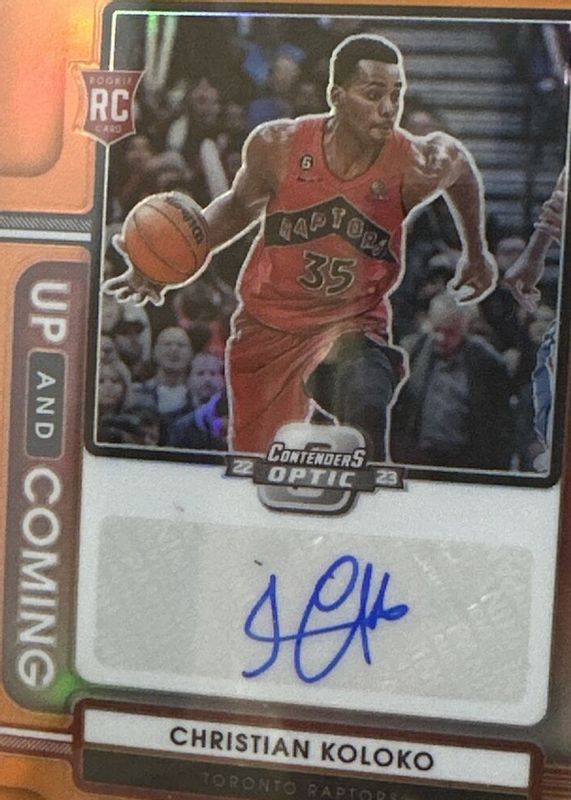The Christian Koloko 2022 Contenders Optic #UCA-CKK Up and Coming Autographs - Orange /25 Rookie card in Raw condition has not changed in price in the last 30 days and was last sold for $15.00 .