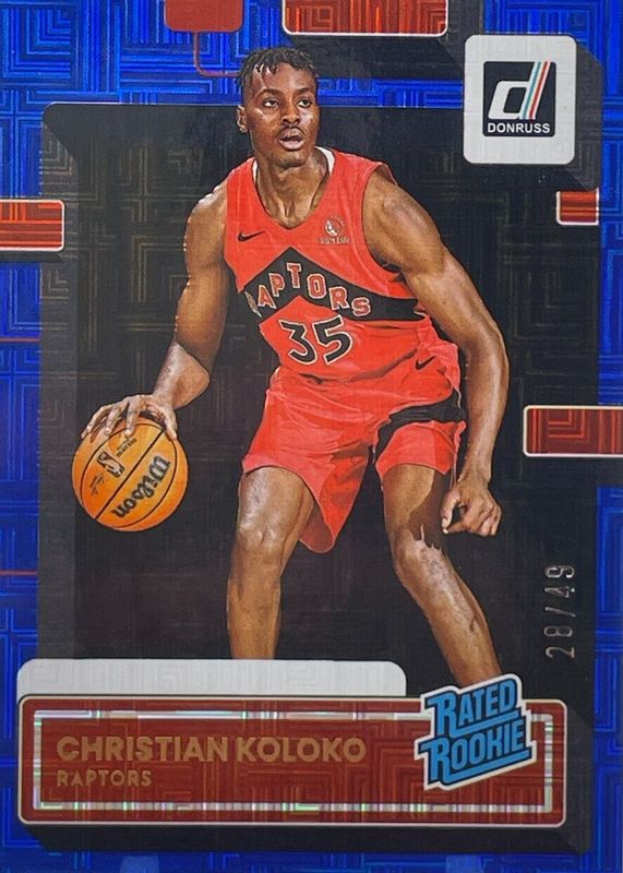 This card is 1 of 20 Christian Koloko's card variations in the 2022 Donruss set being tracked by Sports Card Investor, including Base, Press Proof Purple /199, Holo Laser /149, Choice Red /99, and Holo Purple Laser /99.