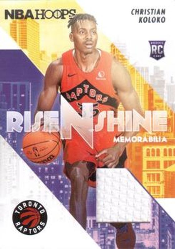 The Christian Koloko 2022 Hoops #RS-CK Rise N Shine Memorabilia Rookie card is 1 of 43 Christian Koloko's card variations in the 2022 Hoops set being tracked by Sports Card Investor, including Base, Blue, Hyper Blue, Impulse, and Neon Green.
