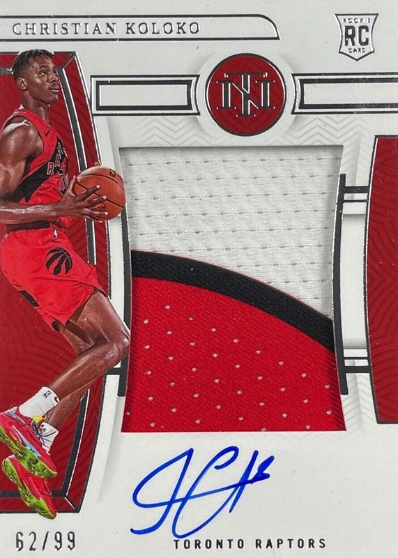 The Christian Koloko 2022 National Treasures #125 Rookie Patch Auto /99 card in Raw condition has not changed in price in the last 30 days and was last sold for $63.00 .