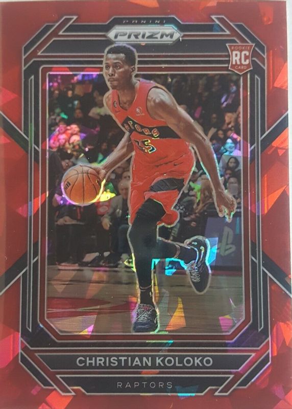 CHRISTIAN KOLOKO 2022-23 Panini Prizm RED CRACKED ICE ROOKIE RC SP #265-RAPTORS!