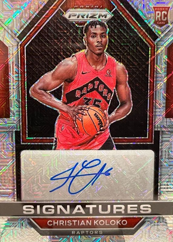 The Christian Koloko 2022 Prizm #RSI-CHK Rookie Signatures - Mojo /25 card in Raw condition has not changed in price in the last 30 days and was last sold for $39.99 .