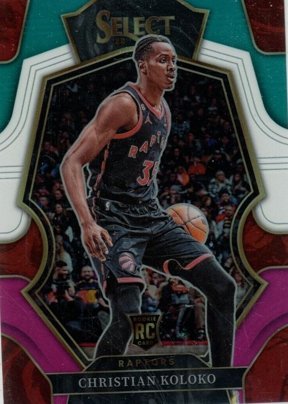 The Christian Koloko 2022 Select #185 Premier Level Teal White Pink /49 Rookie card in Raw condition has not changed in price in the last 30 days and was last sold for $1.49 .