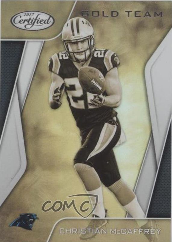 The Christian McCaffrey 2017 Certified #GT-CM Gold Team Rookie card in Raw condition has moved up $1.01 (+14.4%) in the last 30 days and was last sold for $8.00 .