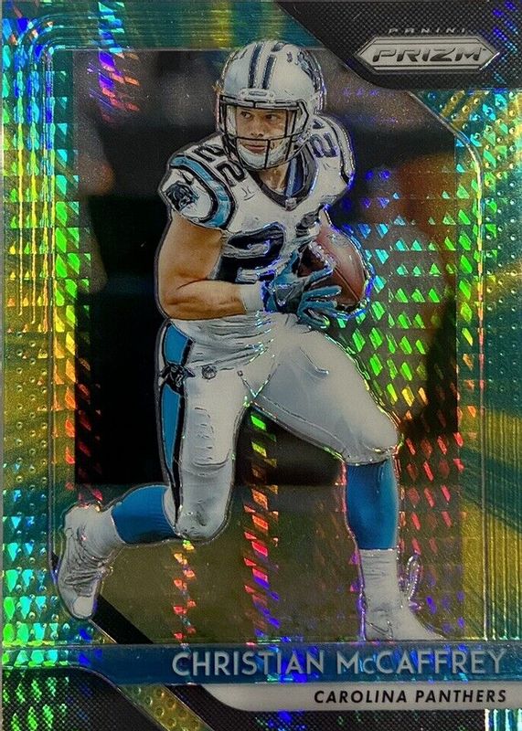 This card is 1 of 19 Christian McCaffrey's card variations in the 2018 Prizm set being tracked by Sports Card Investor, including Disco, Lazer, Neon Green Pulsar, Silver, and Orange Die-Cut /249.