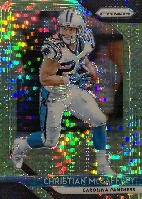 This card is 1 of 19 Christian McCaffrey's card variations in the 2018 Prizm set being tracked by Sports Card Investor, including Disco, Lazer, Silver, Hyper /275, and Orange Die-Cut /249.