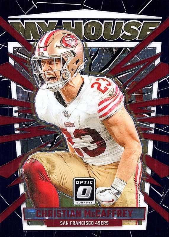 2023 Donruss Optic Christian McCaffrey Purple Stars Prizm My House #13/25 49ers