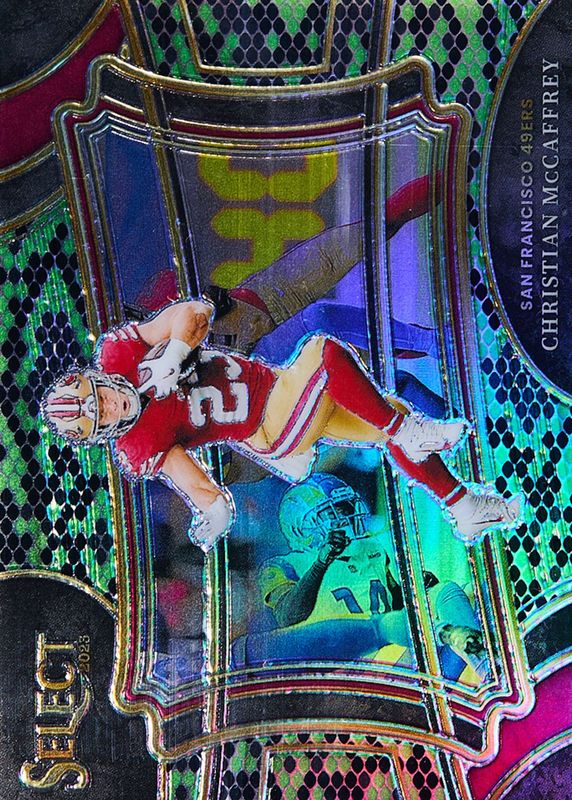 Christian McCaffrey 2023 Select #382 Field Level Green & Black Snakeskin /2 RAW Price Guide