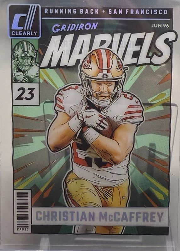 CHRISTIAN MCCAFFREY 2024 PANINI DONRUSS CLEARLY GRIDIRON MARVELS 49ers