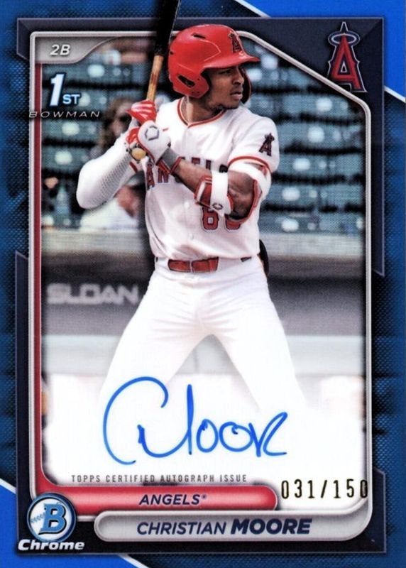 2024 Bowman Draft Christian Moore Chrome Prospect 1st Auto TRUE BLUE /150 Angels