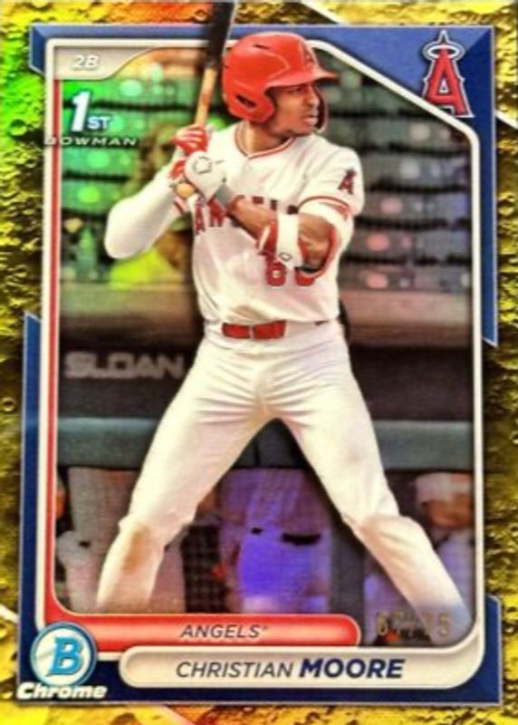 2024 Bowman Draft Christian Moore Chrome Yellow Lunar Refractor 1st #/75