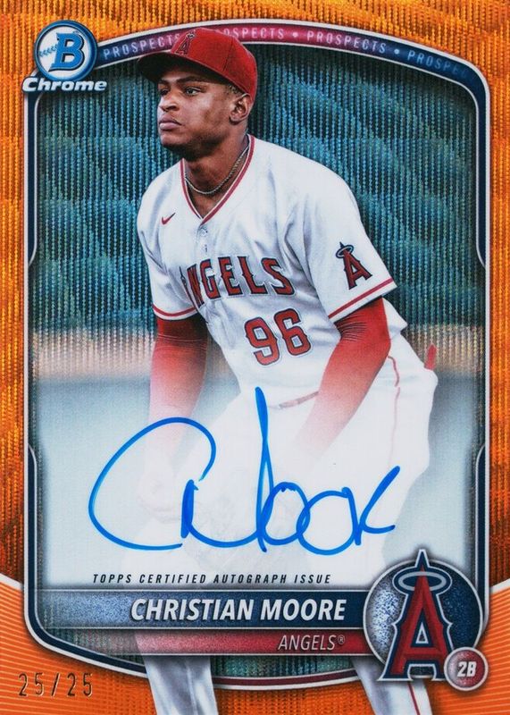 Christian Moore 2025 Bowman #CPA-CMO Chrome Prospect Auto - Orange Wave Refractor /25 RAW Price Guide