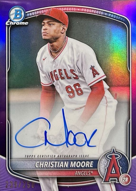 2025 Bowman Chrome Purple Auto /250 Christian Moore #CPA-CMO Angels RC