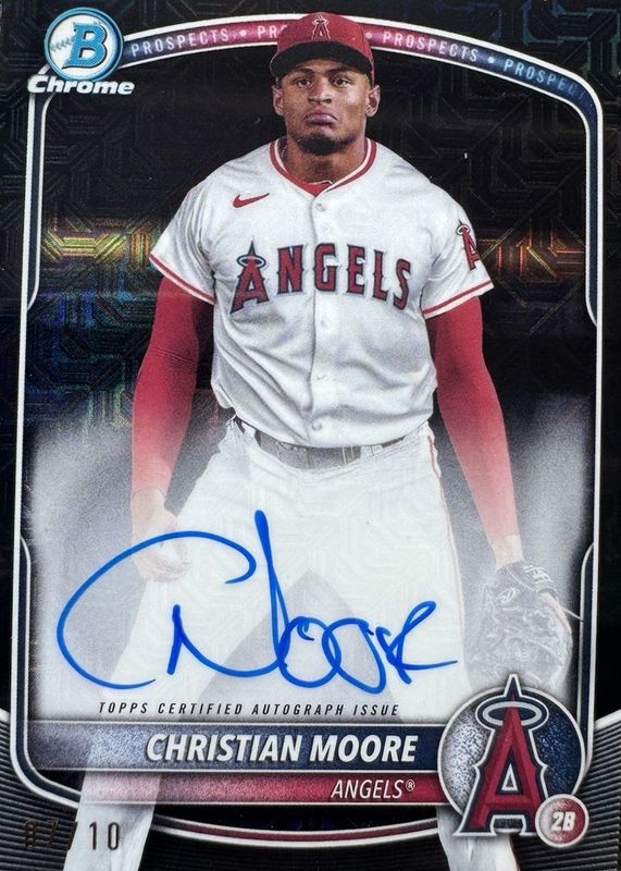 Christian Moore 2025 Bowman Mega Box #BMA-CMO Chrome Prospect Auto - Black Refractor /10 RAW Price Guide