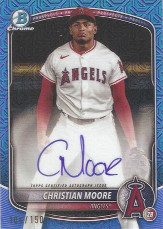 2025 Bowman Chrome Prospects Christian Moore Mojo Blue On Card Auto 76/150 Angel