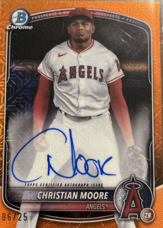Christian Moore 2025 Bowman Mega Box #BMA-CMO Chrome Prospect Auto - Orange Refractor /25 RAW Price Guide