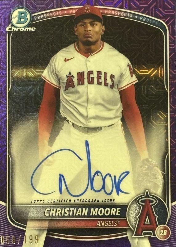 Christian Moore 2025 Bowman Mega Box #BMA-CMO Chrome Prospect Auto - Purple Refractor /250 RAW Price Guide