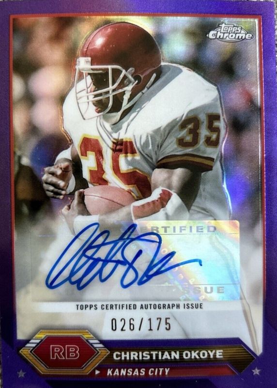 2023 Topps Composite Christian Okoye Chrome Auto Purple Refractor #33/175 Chiefs