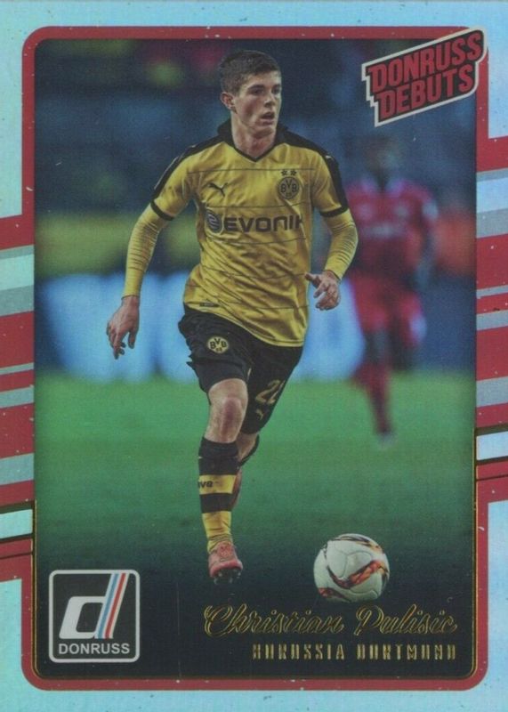 The Christian Pulisic 2016 Donruss #224 Donruss Debuts - Holographic Rookie card in Raw condition has moved down -$14.50 (-12.4%) in the last 30 days and was last sold for $102.50 .